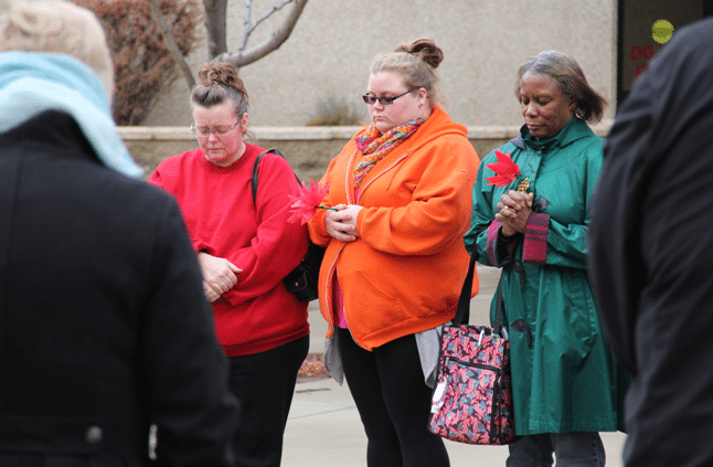 The courtroom was packed with members of the public, most of whom carried little red flowers indicating their support of Barronelle Stutzman and Arlene’s Flowers. Those who couldn’t fit inside the courtroom waited in the hallway and held signs outside the courthouse demonstrating their opposition to the lawsuit.