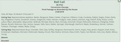 The Washington State House of Representatives voted Wednesday afternoon to pass legislation banning “conversion therapy” for minors by a 66-32 margin. Sixteen Republicans joined every Democrat to pass it.