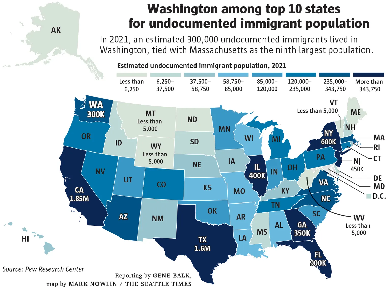 • Out of the 50 states, Washington state ranks ninth in illegal immigration.