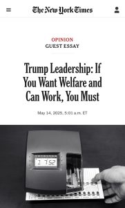 The four leaders of the Trump Administration who opined the NYT op-ed uphold the dignity of work. The four authors emphasized that their requirement “is not just about money.” “Work also provides purpose and dignity. It strengthens families and communities as it gives new life to start-ups and growing businesses,” they write. “It provides an example to our next generation.” Yes, the generational cycle of welfare must end, and with it, a new vision for us today about the role of government, which is actually an older view of government (see point #7 above).
