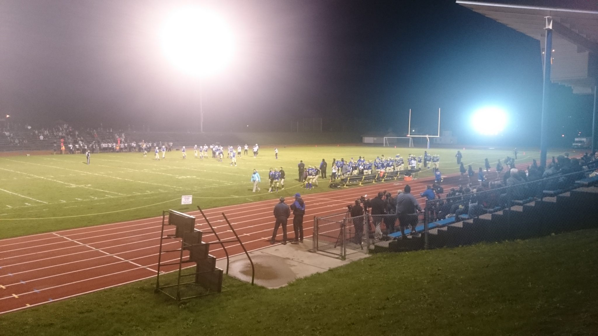 Announcements were made before the game, at halftime, and in the fourth quarter, that no unauthorized persons were allowed on the field for “player safety reasons.” The field was cordoned off with yellow rope. The game ended, and coaches carefully corralled players towards the locker room, and away from the middle of the field. But not before they rushed over to the stands to hug Coach Joe Kennedy.