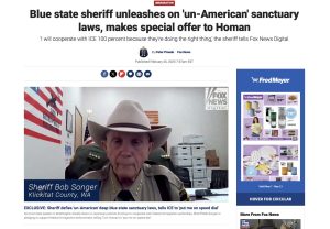 • Sheriff Bob Songer of Klickitat County pledged to support ICE despite Washington State’s official policy to resist federal intervention and become a migrant safe haven. “I want to send a message to ICE. If you need any help at all, put me on speed dial.”