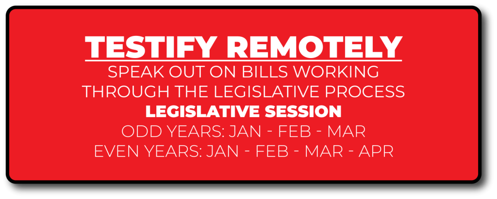 - Locate the correct hearing and click “To testify remotely, click here” on the Legislature’s bill page.