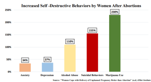 Abortions also make women more susceptible to developing serious mental health issues after the procedure, such as Post Abortion Syndrome (PAS), which psychiatrists and counselors have likened to Post Traumatic Stress Disorder (PTSD). Symptoms of PAS include: “intense fear, anxiety, sense of helplessness, feeling of loss of control, emotional numbing, difficulty recalling event, guilt, pain, grief, depression, irritability, angry outbursts, aggressive behavior, sleep difficulties, sexual dysfunction, flashbacks, nightmares, anniversary reactions, withdrawal from relationships, avoidance of children, pessimism regarding future, drug and/or alcohol abuse, and suicidal thoughts.”
